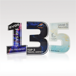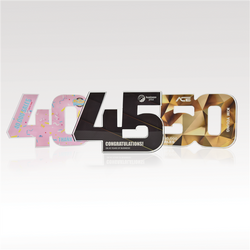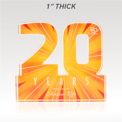 Celebrate years of dedicated service and more with our acrylic numerals. Available in two designs, Traditional or Plus, and select from 1” thick or ¾” thick acrylic, offering plenty of space for vibrant, full-color designs. Select from our standard background options or customize your own to reflect the spirit of your achievements!